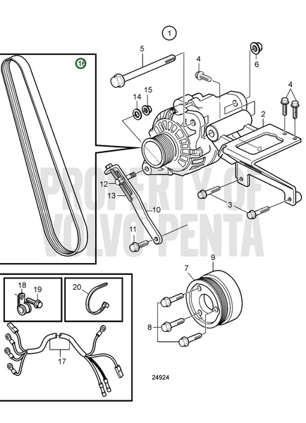 Volvo Penta belt for D2-50, D2-55, D2-60 and D2-75 with an extra alternator.